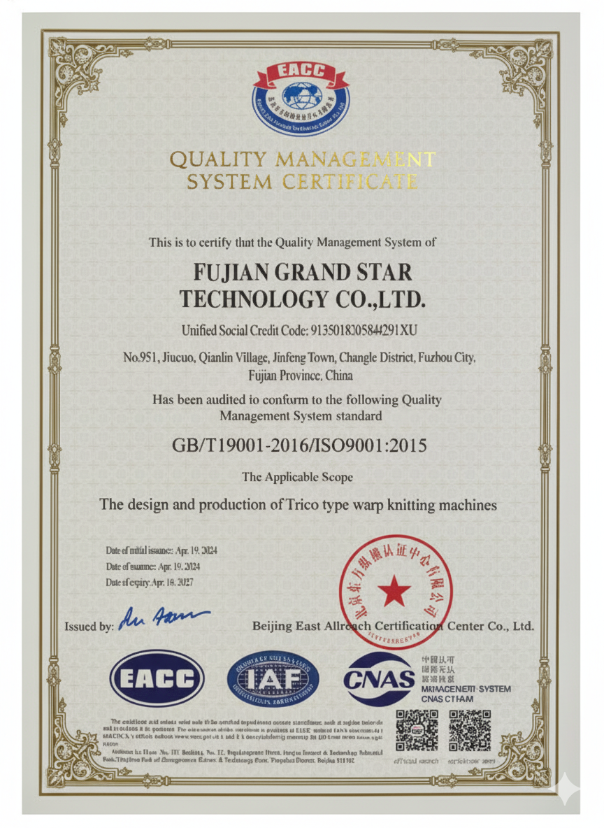 The GrandStar HKS2 Tricot Warp Knitting Machine is a powerful, flexible, and future-ready solution for global textile mills aiming to enhance production capability, fabric quality, and competitive advantage. With exceptional speed, advanced spandex control, and broad gauge configuration, the HKS2 stands as a premium choice for manufacturers producing high-performance elastic fabrics.